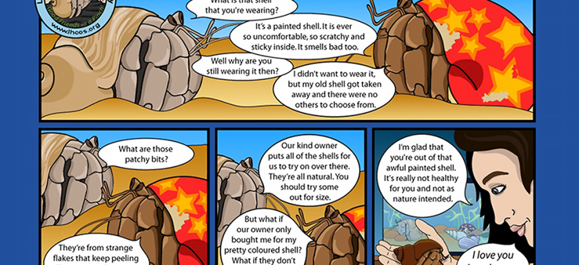 Painted shells are inhumane and unnecessary and destroy a much-needed natural resource. Please speak out about this to your local pet shops that continue to order hermit crabs in painted shells just so they can charge more for them. Hermit crabs are forced out of their natural shell. One method can be seen in the video below, the crabs are placed in a vice and their natural shell is destroyed. Other methods include heating the shell so the crab abandons it, drilling a hole, and poking the crab with a wire until it abandons the shell. Hermit crabs are often forced into the shells whileRead More →
